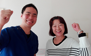 キャスター付きのイスに座って動かしてもらう生活で、病院に色々と通いましたが全く治らなかったのに、佐久間先生に治療してもらうと、腰痛も肩こりもその日の治療で改善!