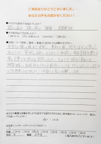 当初はただ痛い所を治そうと思って来ましたが、貴院の方針になるほどと納得し身体全体を整える事の大事さを改めて実感しました。